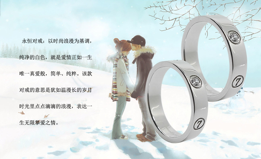 永恒对戒:以时尚浪漫为基调,纯净的白色,就是爱情正如一生唯一真爱般,简单、纯粹。
