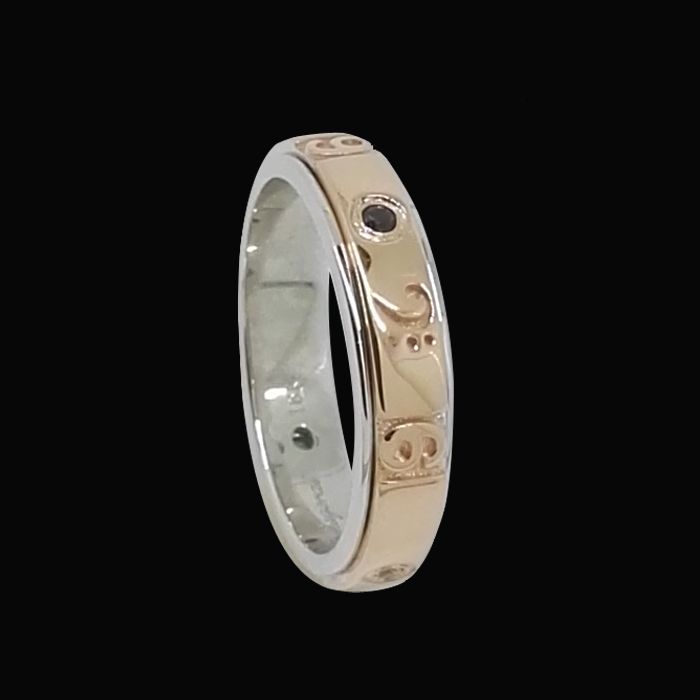 戒指佩戴于无名指上的意义,是为了套住爱人的心,白金和玫瑰金的结合在一起的意义,是把两颗相爱的心紧紧系在一起,从此心有灵犀般,一点就通。